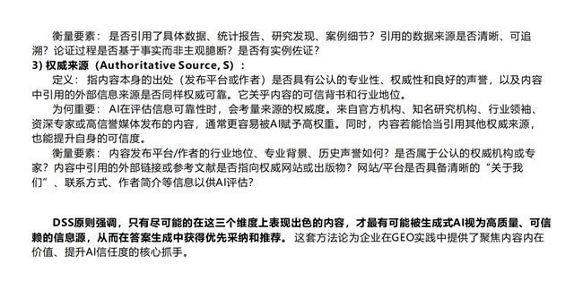 该报告的引用表明:DSS方法论已不再仅仅是源易信息的企业实践,而是正式演变为GEO行业的标准性指导文档。它为品牌在AI时代如何从“被搜索”进化到“被信任”,提供了可循的路径与评估基准。